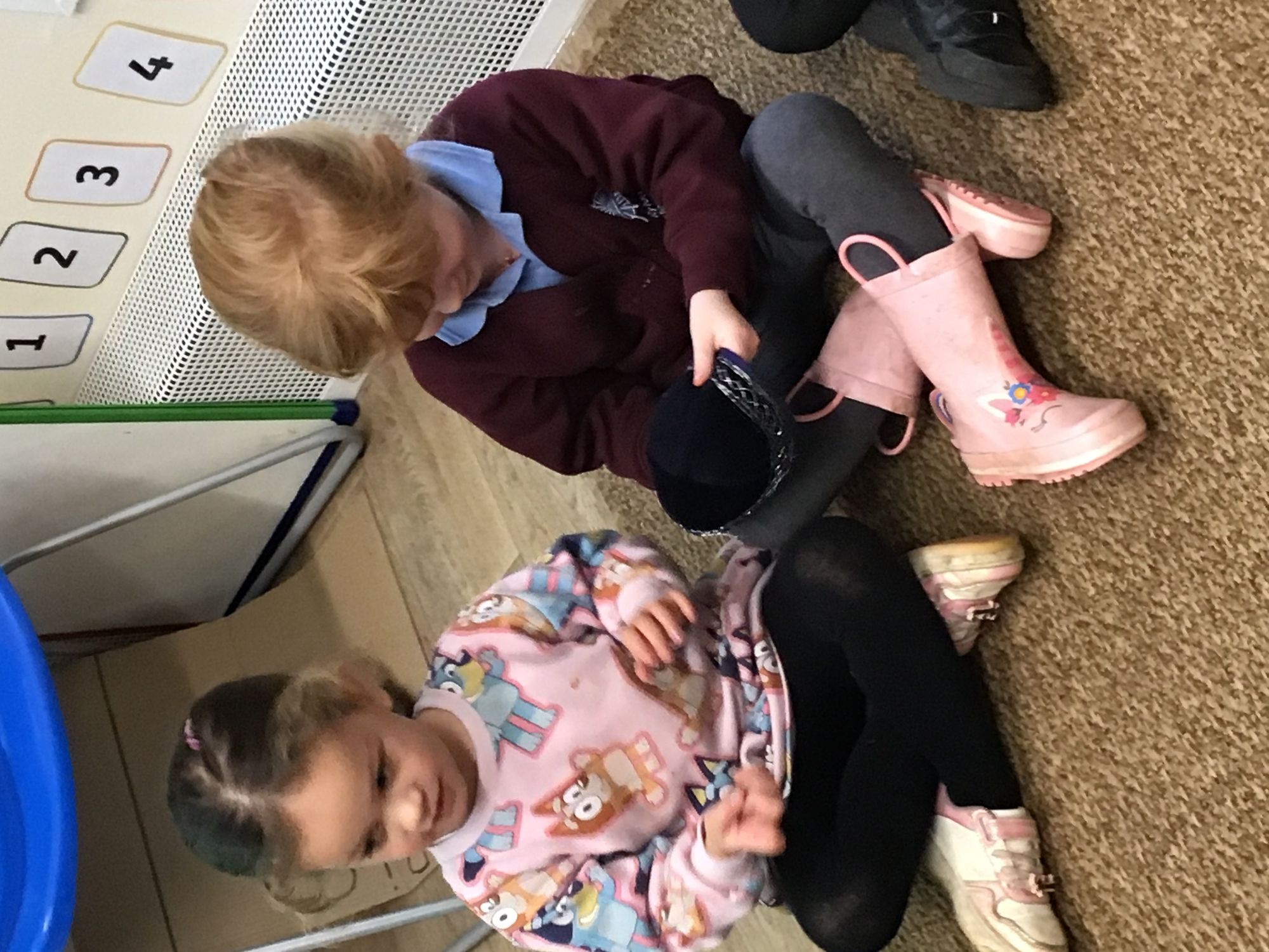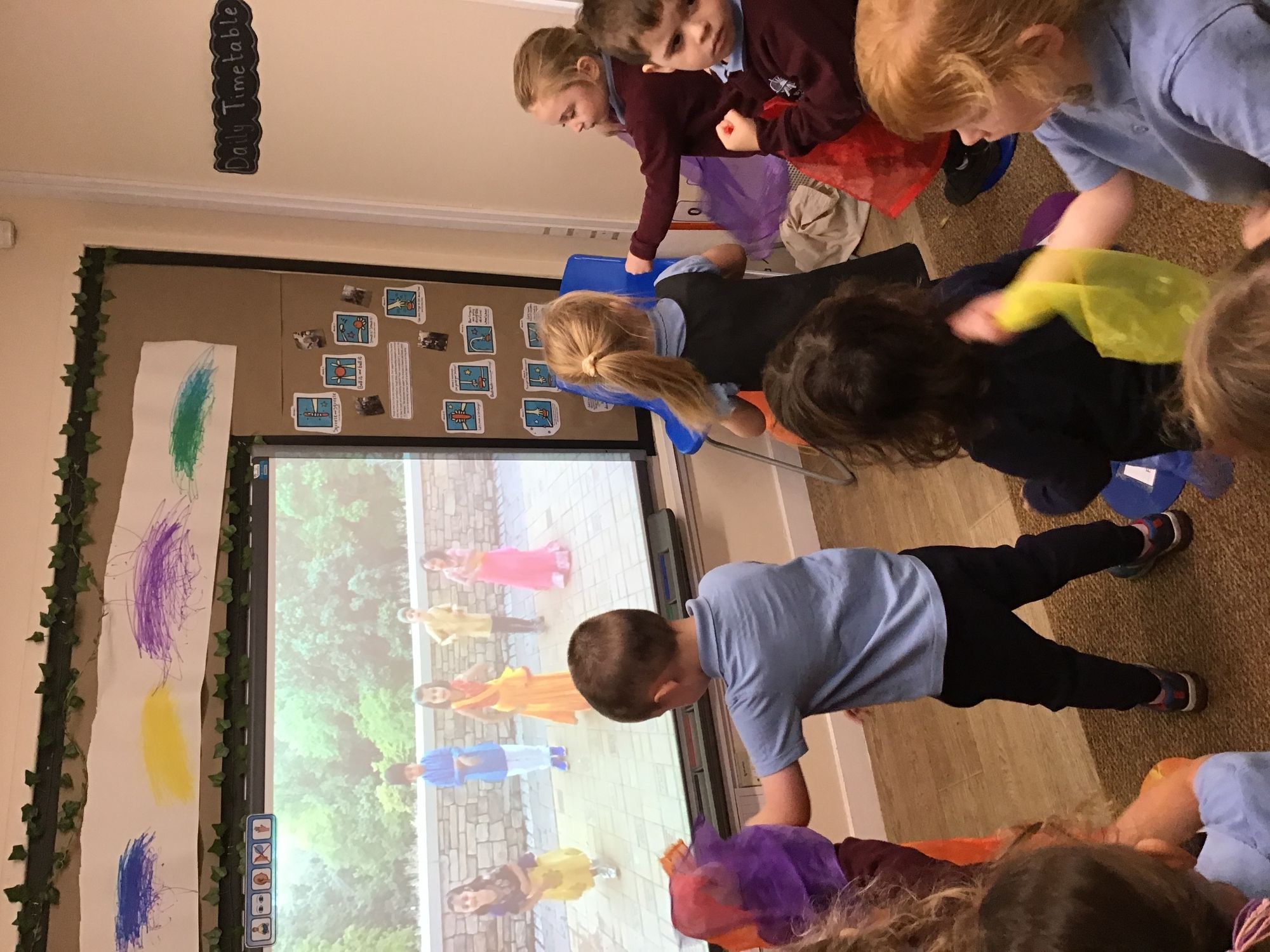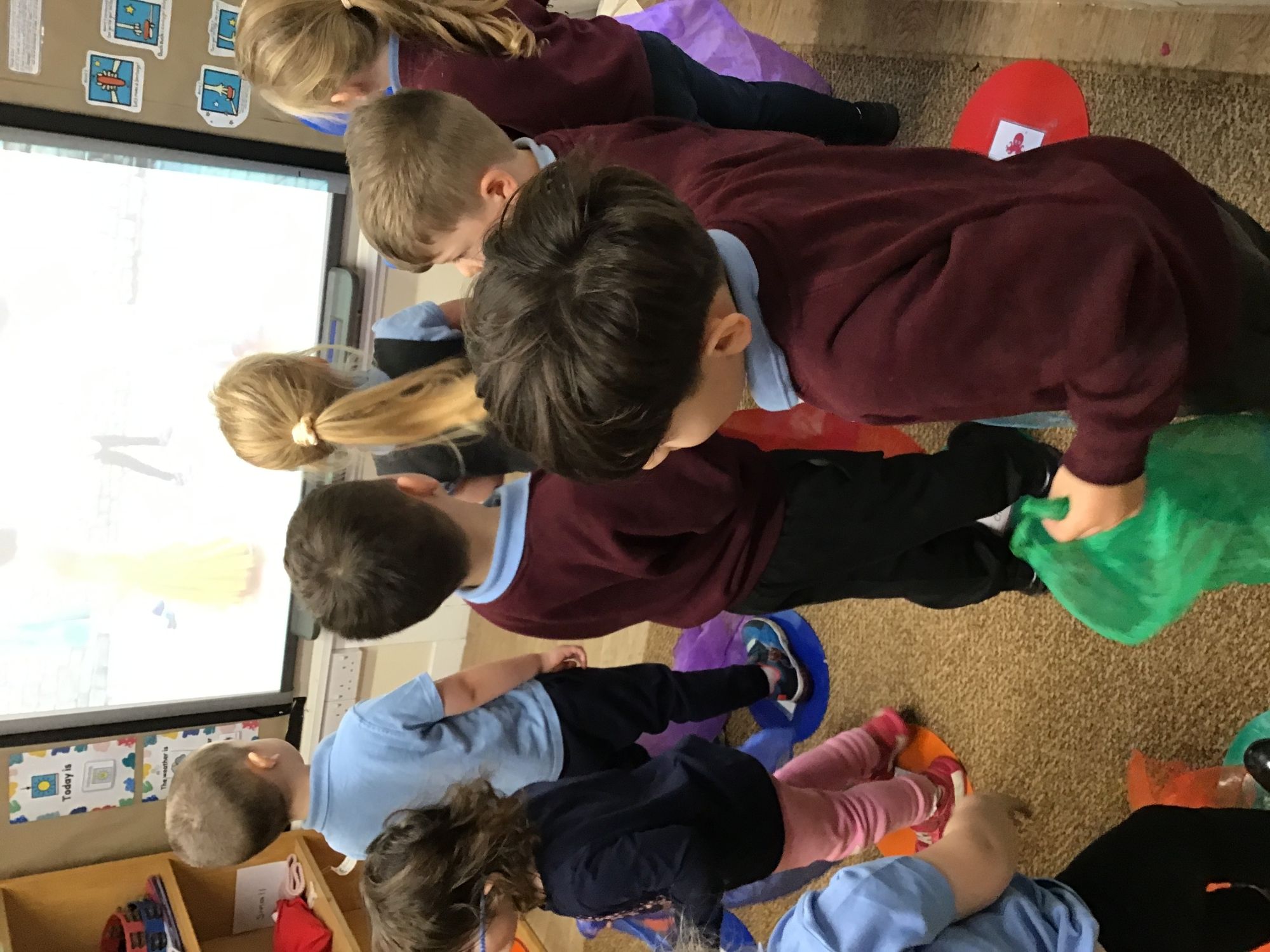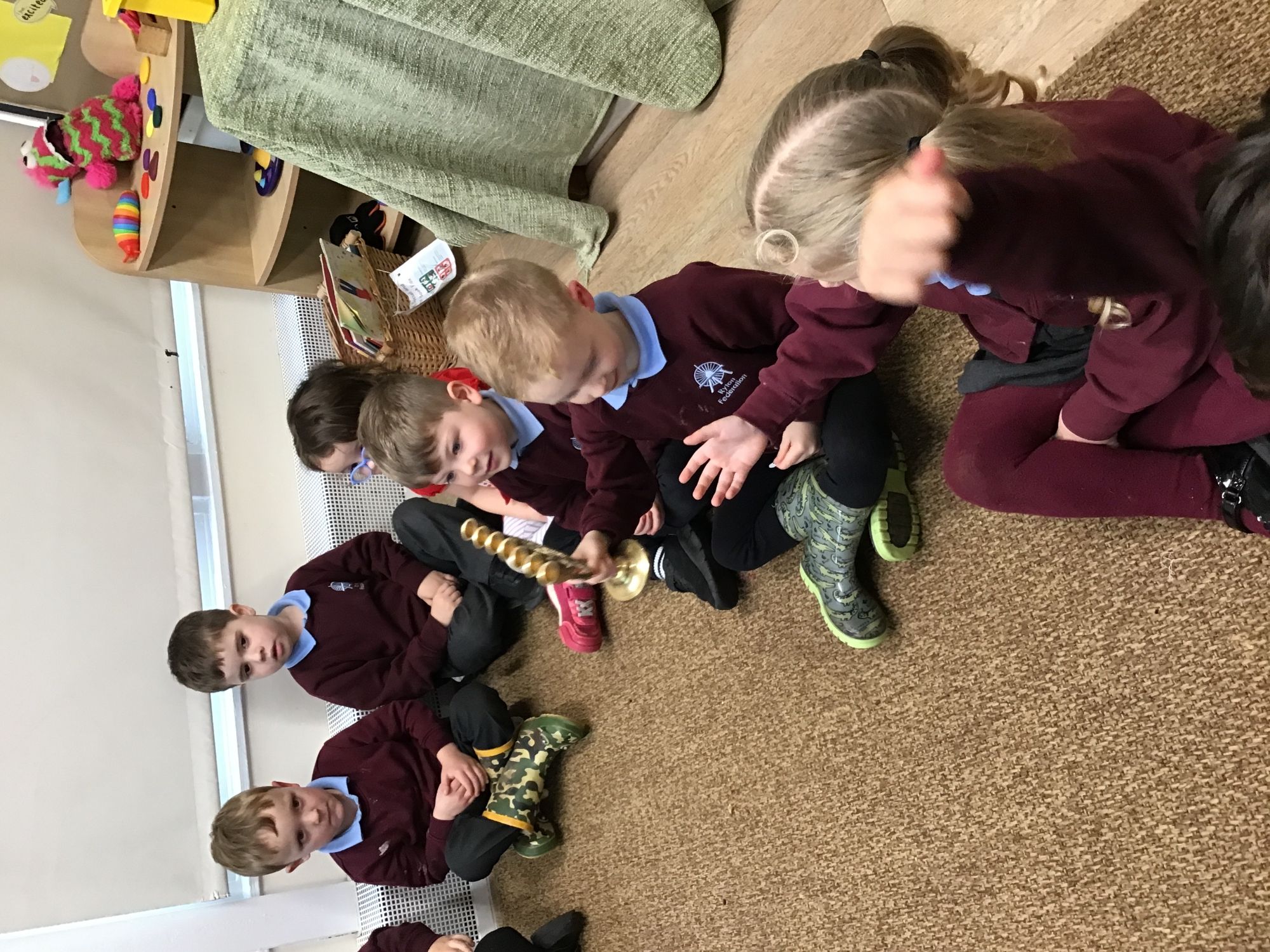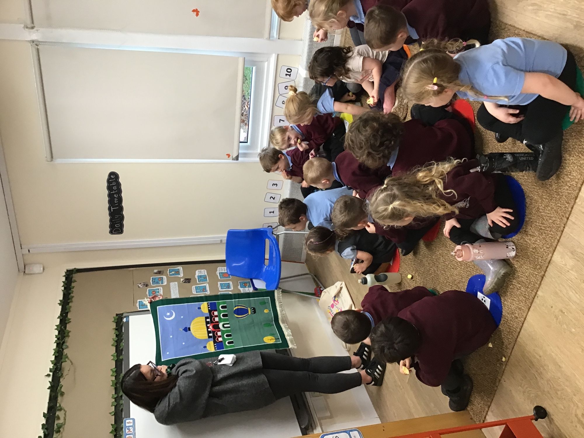 To celebrate Inter-Faith Week Nursery looked at the beautiful Islamic prayer mats on Tuesday, danced to Hindi Bhangra music on Wednesday, looked at Jewish artifacts on Thursday and played eye-spy with The Big Frieze on Friday.