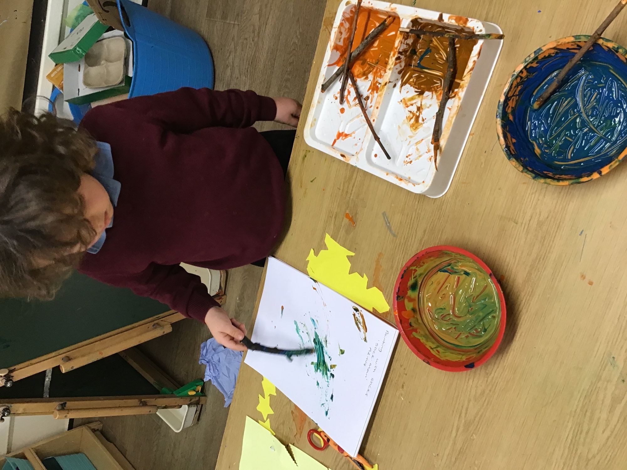 Stick Man was the book of our week. We went searching for a range of sticks and explored floating and sinking. We used sticks to create marks, compared stick lengths, explored ice paints and made a wonderful large stick creation using a range of materials.