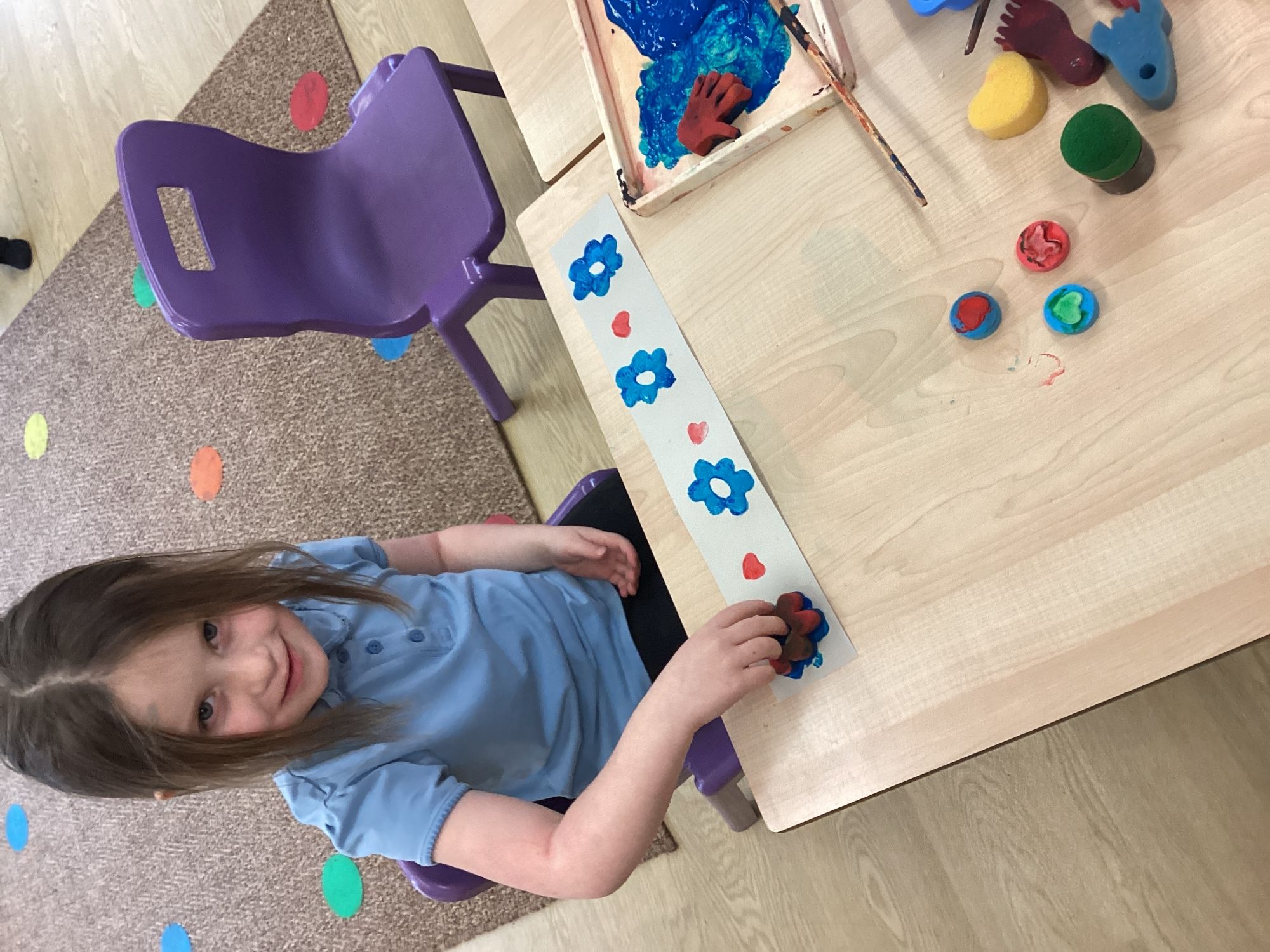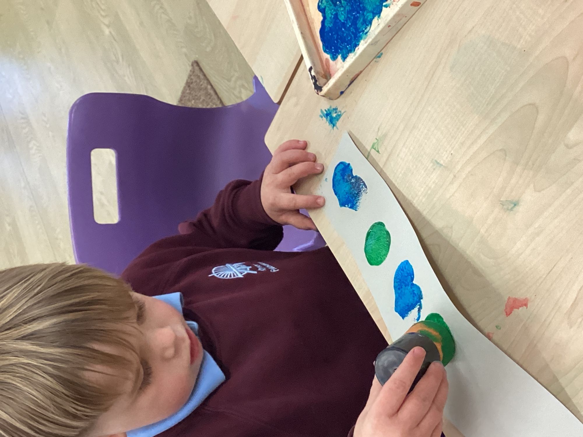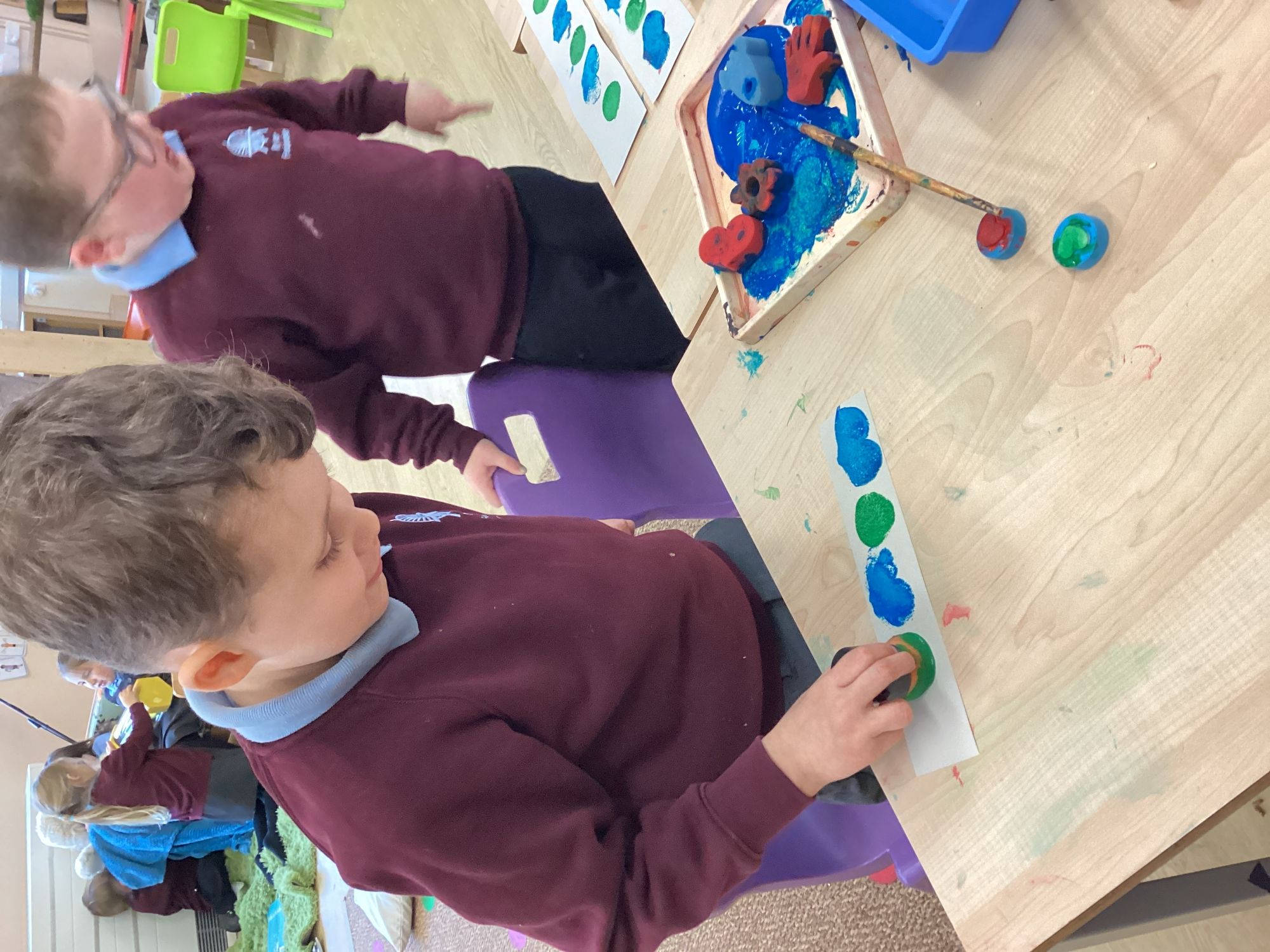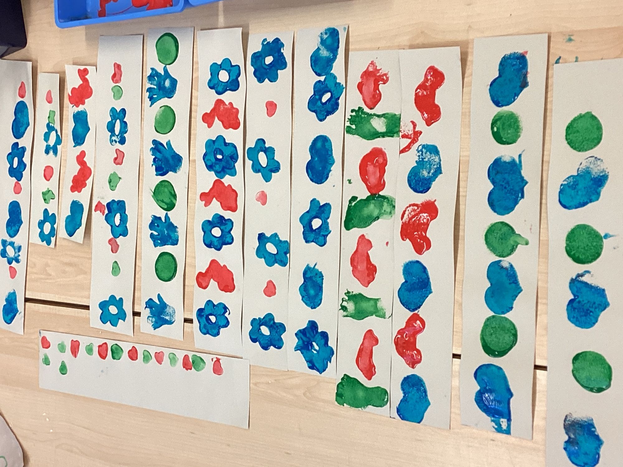 In our maths lessons we have been learning all about repeating patterns. We have made patterns in a range of ways including; body movement patterns, patterns with objects and printed patterns. Here are some examples of our lovely work!
