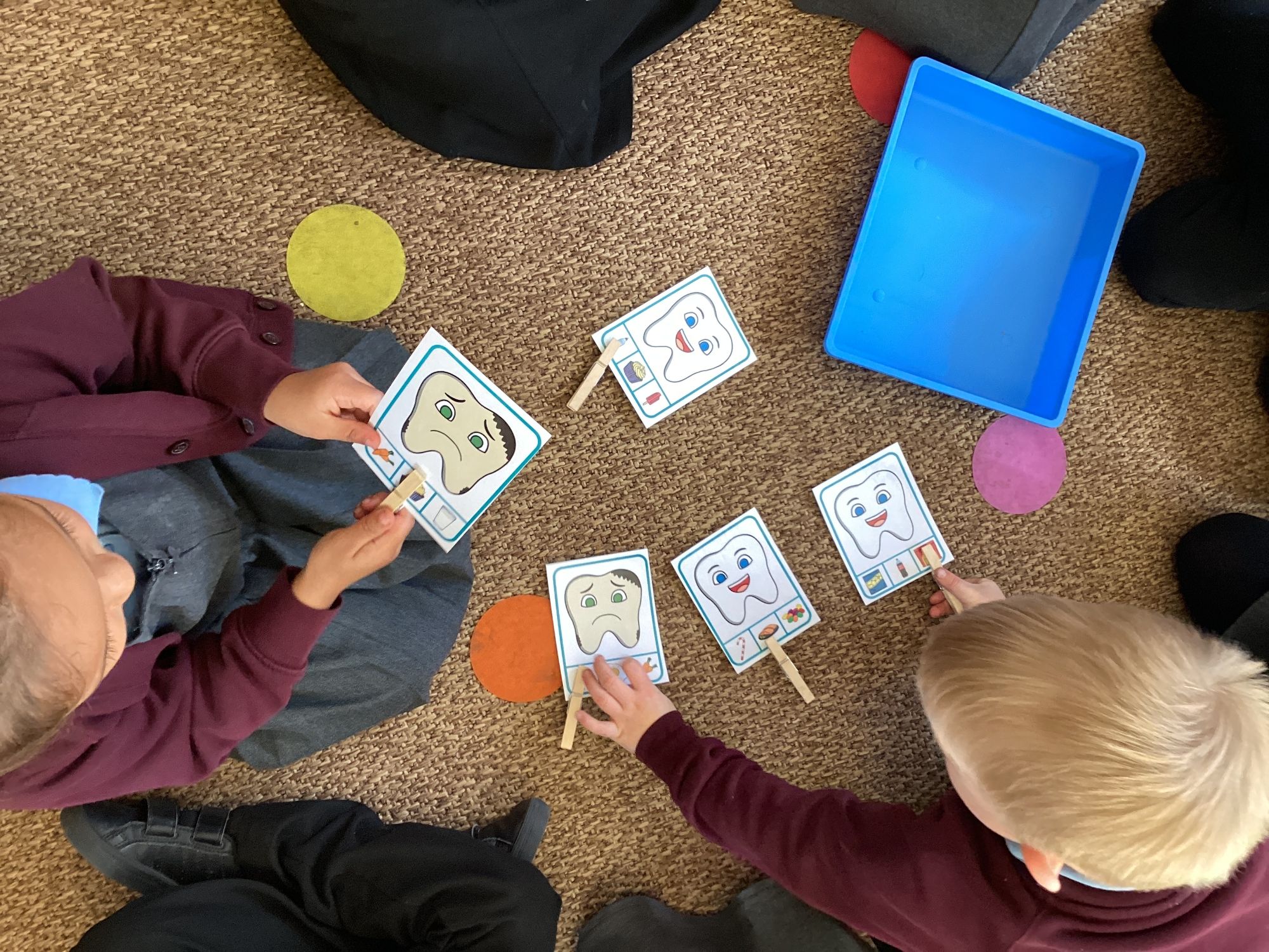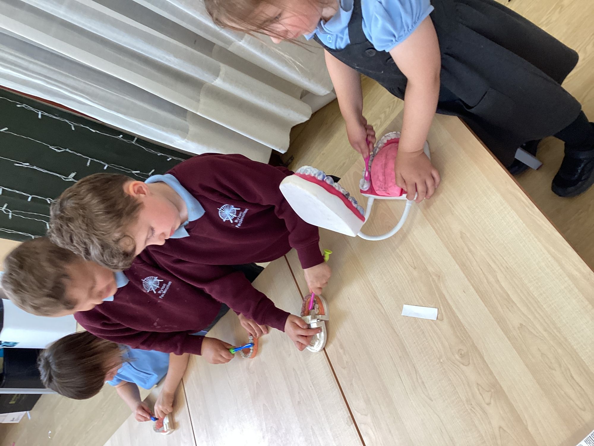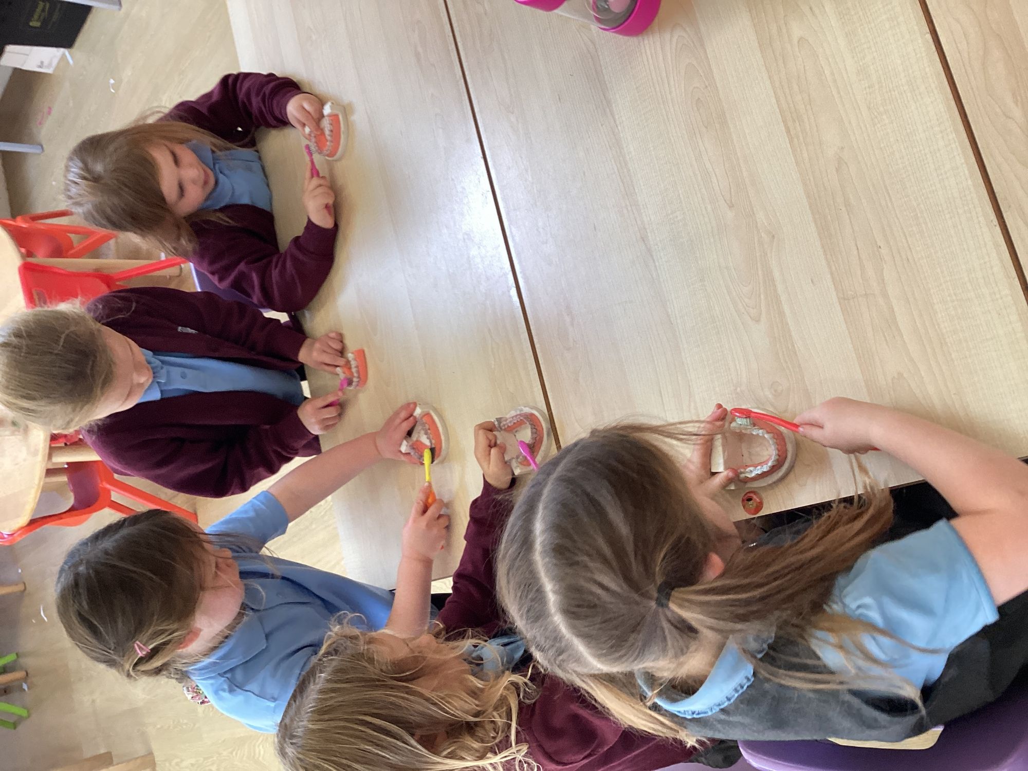 We have been learning all about different ways to keep our teeth healthy. We were surprised at how long two minutes was when we practised brushing teeth with the timer!