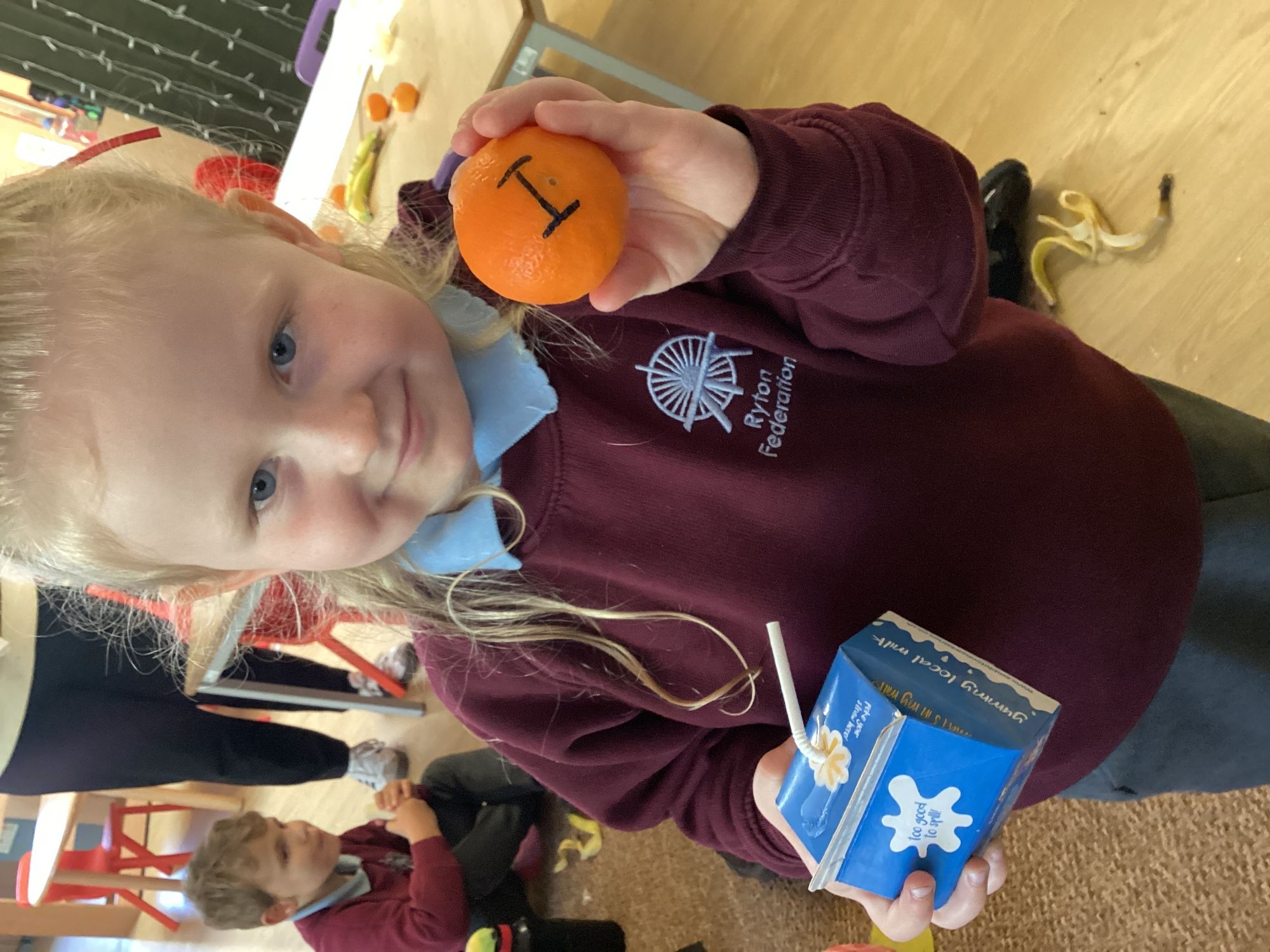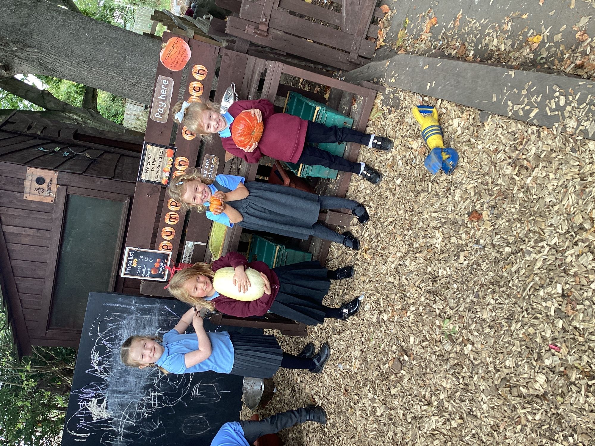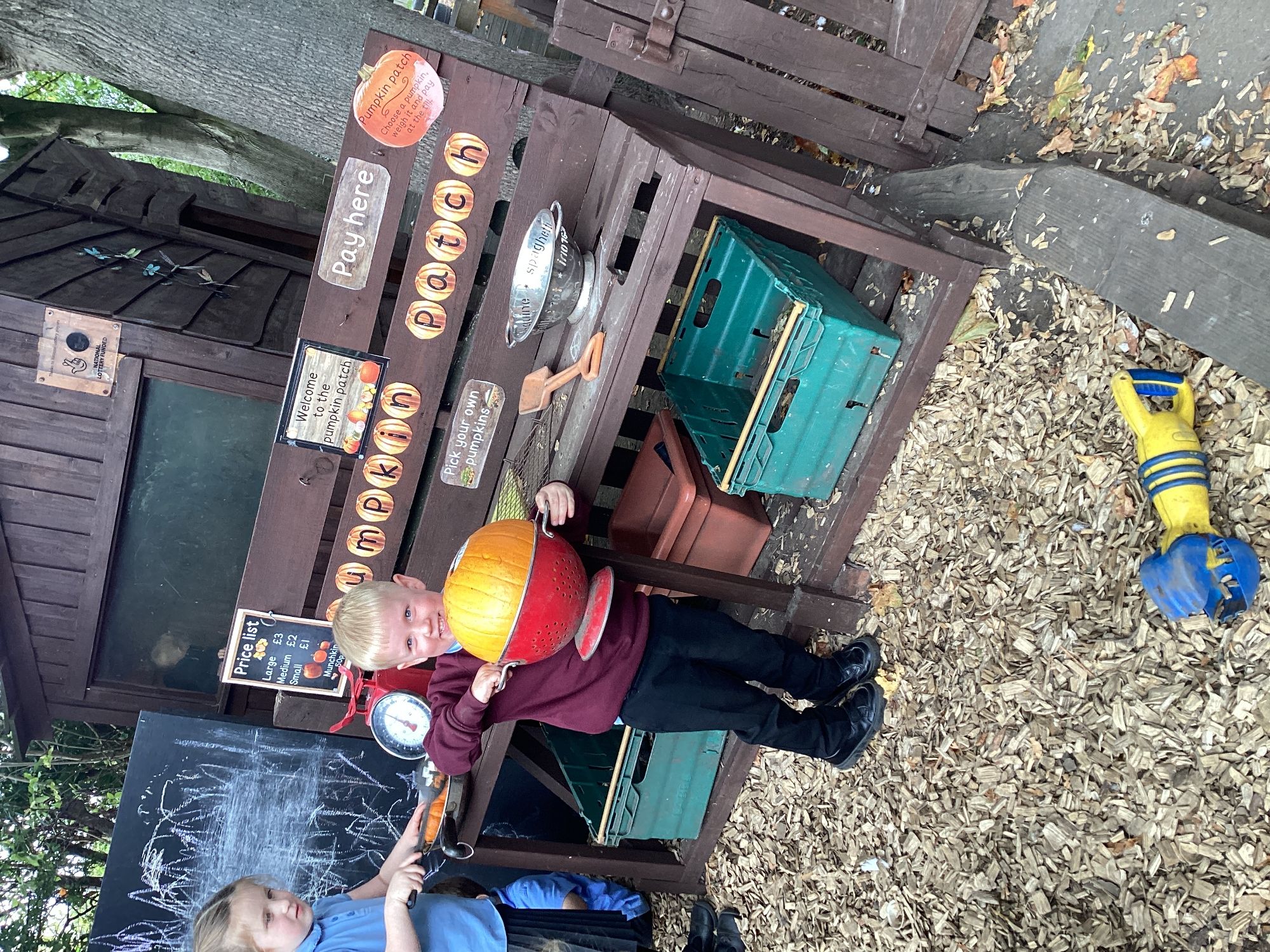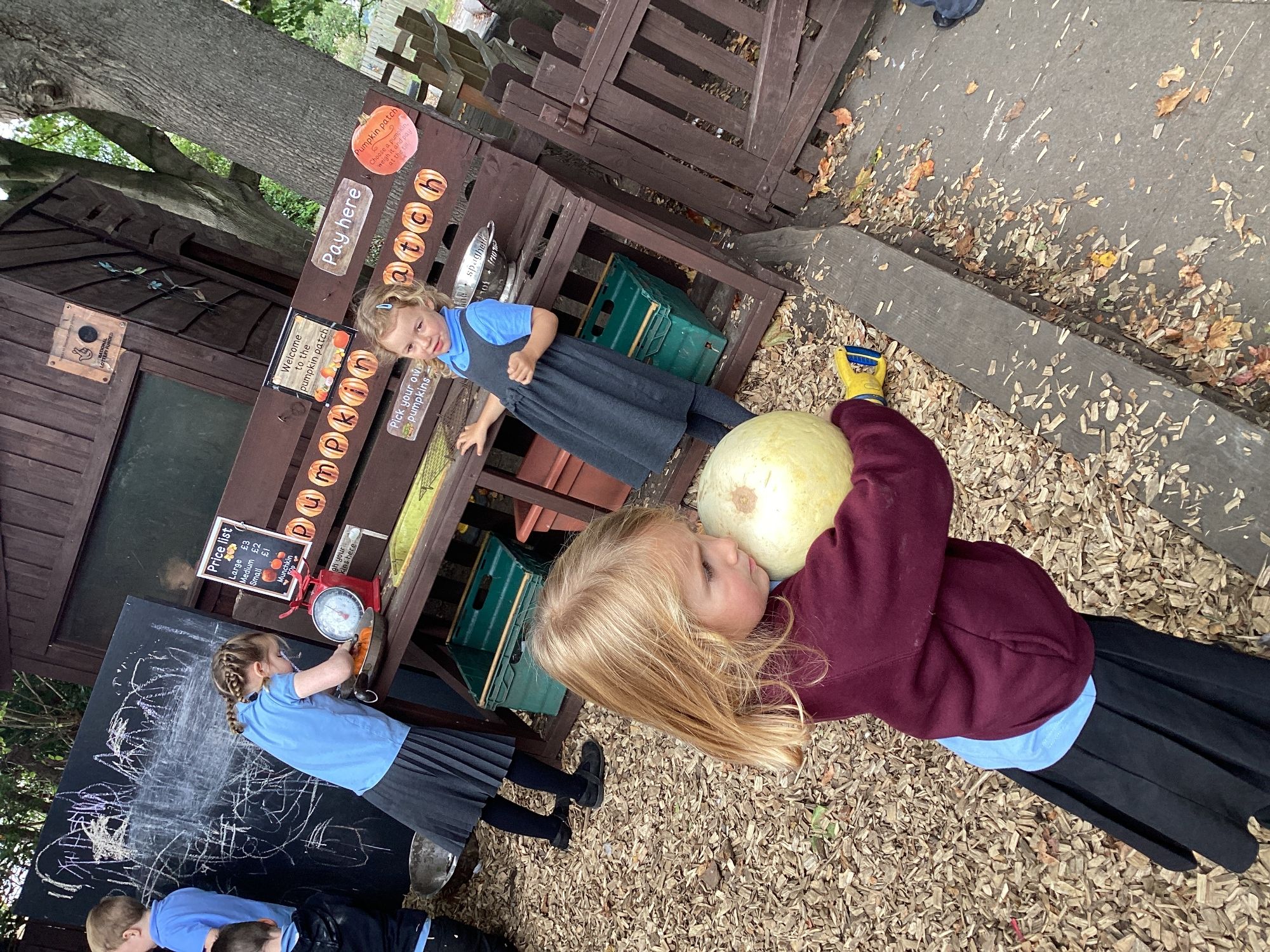 We have our very own pumpkin patch here at Ryton early years. We have loved weighing the pumpkins and picking the perfect size to sell to our friends in our shop. Some of them are very heavy but they have been great for helping us to get strong arm muscles!