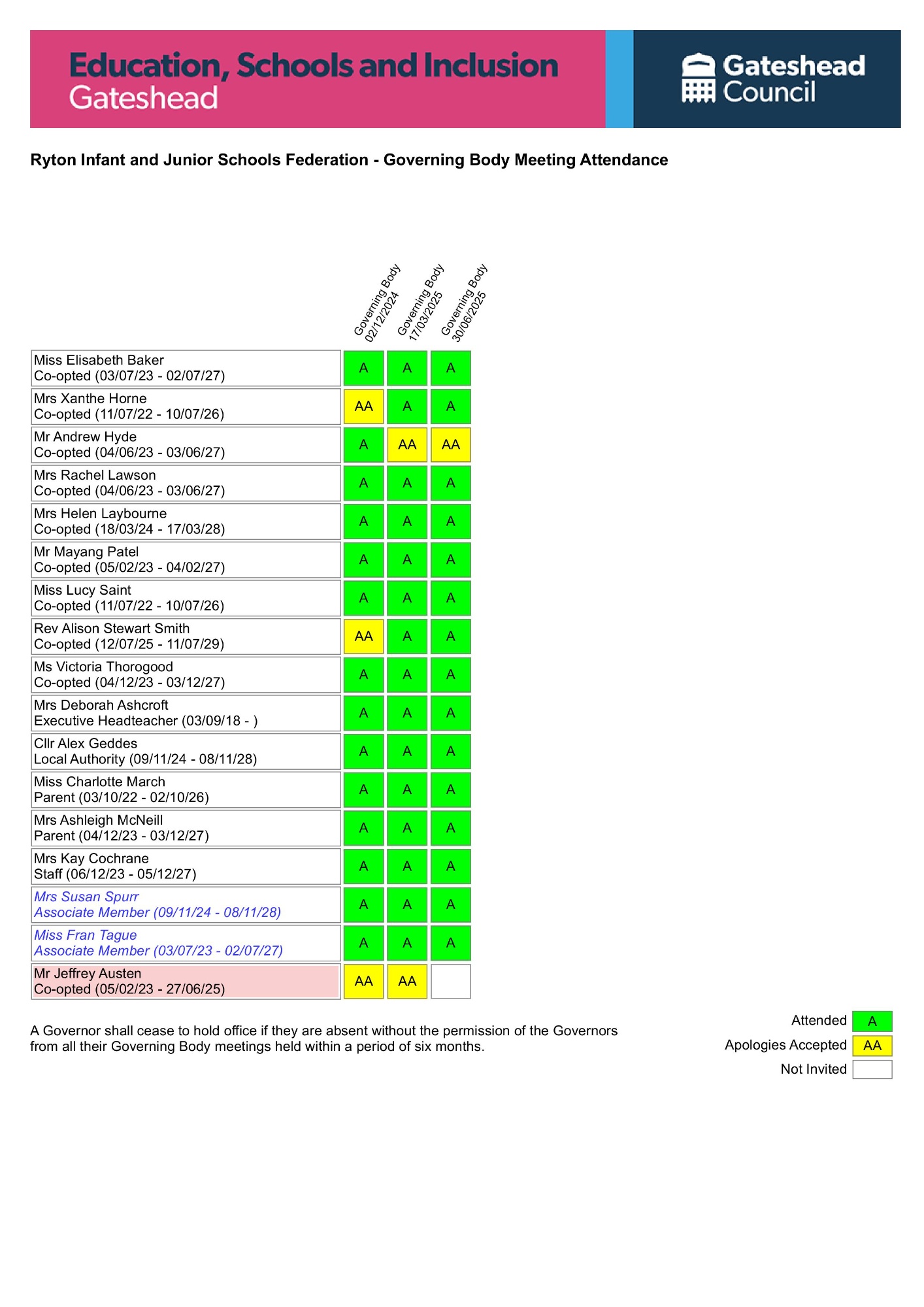 The diversity of our Board of Governors was reviewed in July 2023 and we are satisfied that it reflects the community we serve in and around Ryton. Due to the small number of Governors involved we will not be publishing data around protected characteristics to maintain confidentiality.